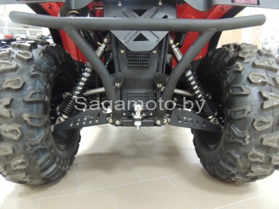 Помимо всего прочего, квадроцикл обладает и фаркопом, что делает его незаменимым помощником в сельском доме. К фаркопу можно прикрепить прицеп и перевозить достаточно крупногабаритные грузы, благо мощность SIM 500(карбюратор) вполне это позволяет. Благодаря дополнительному пассажирскому сиденью, во время поездки можно комфортно расположиться вдвоем, что возможно далеко не на всех квадроциклах. Нельзя оставить без внимания и дизайн. Квадроцикл достаточно агрессивен на вид, и это придает ему особый шарм. Будучи обладателем этой техники, остаться незамеченным практически невозможно.